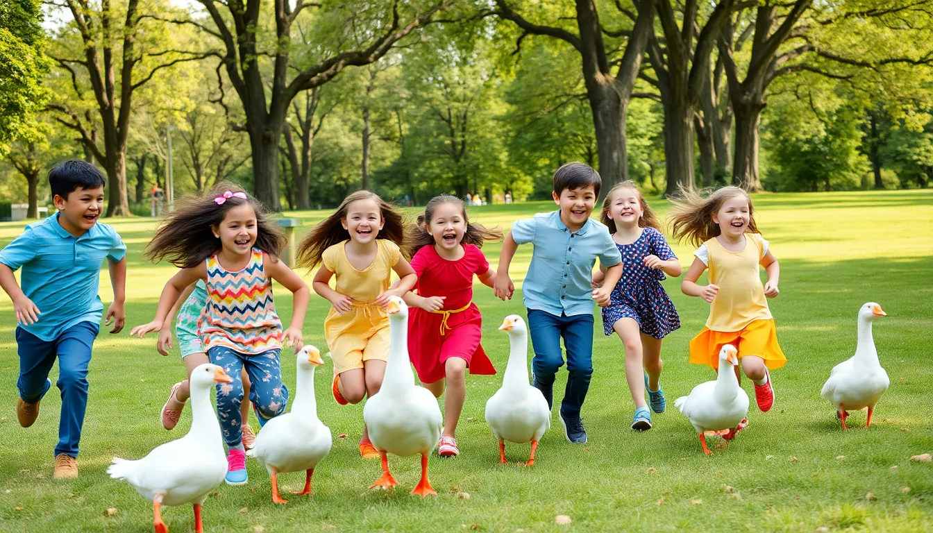 • Duck, Duck, Goose: This timeless game involves players sitting in a circle. One child walks around, tapping others on the head, calling out “duck.” When they say “goose,” the selected child chases the tapper back to their spot.